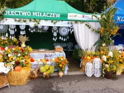 KGW Miłaczew w dniu 7 września br. brało udział w konkursie na "Najładniejsze EKO stoisko Kół Gospodyń Wiejskich Powiatu Tureckiego", który odbył się podczas Powiatowo-Gminno-Parafialnych Dożynek we Władysławowie. Aranżacja stoiska wzbudziła uznanie u komisji oceniającej, dzięki temu, że prezentowana była na nim rękodzieło naszych członkiń. Uznaniem cieszyły się również tradycyjne, wiejskie potrawy, które serwowaliśmy odwiedzającym. Były to m.in. karkówka z kluskami śląskimi i kapustą zasmażaną, grochówka, słodkie wypieki, chleb ze smalcem i ogórkiem małosolnym. Nasze KGW zdobyło pierwsze miejsce, a w nagrodę otrzymało pamiątkowy dyplom oraz nagrodę finansową.